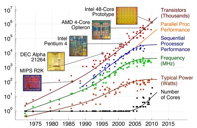 The above sweeping visualization (thanks to Prof. Mark Horowitz and his group) shows the evolution of computer architectures is moving toward multicore designs. Today, multicore processors and multiprocessor systems are common in many electronic products such as mobiles, laptops, desktops, and servers. In order to keep up with the performance scaling, it is becoming necessary for software developers to write parallel programs that utilize the number of available cores.