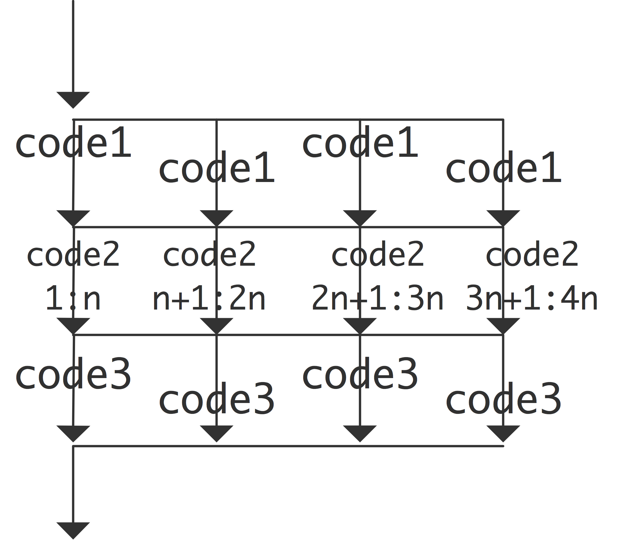 The most basic and simplest concept of parallel programming is loop-level parallelism, exploiting parallelism that exists among the iterations of a loop. The program typically partitions a loop of iterations into a set of of blocks, either fixed or dynamic, and run each block in parallel. Below the figure illustrates this pattern.